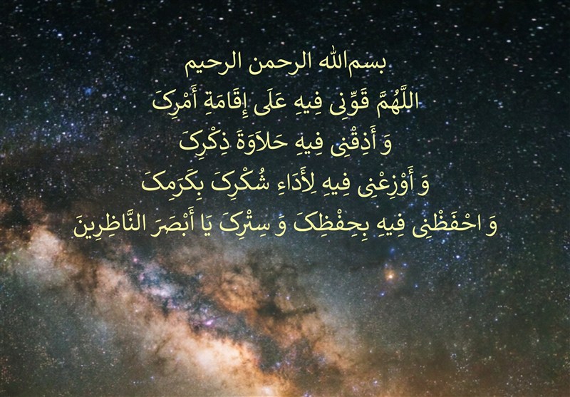 خدایا، مرا در این روز براى اقامه و انجام فرمانت قوت بخش و حلاوت و شیرینى ذکرت را به من بچشان و براى اداى شکر خود به کرمت مهیا ساز و در این روز به حفظ و پردهپوشى مرا از گناه محفوظ دار، اى بصیرترین بینایان عالم.